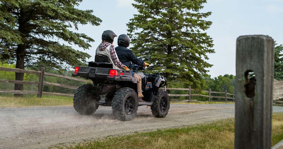Le Sportsman X2 570 vous aidera à faire face à tous les travaux  grâce à sa capacité de traction énorme de 830 kg et de chargement de 181 kg de la benne basculante.